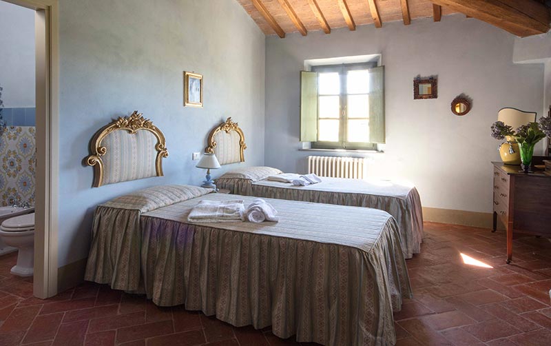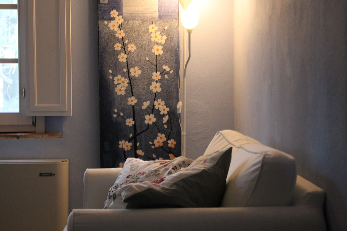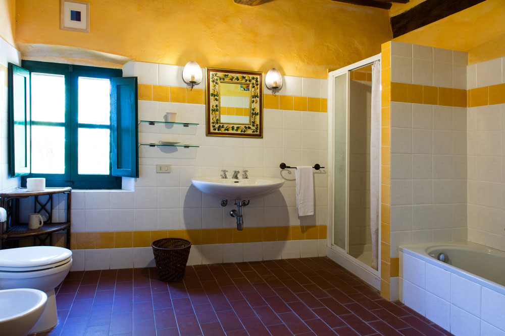The room “Minu” has a private bathroom, a double bed and an extendable bed (when closed, it can be used as a couch). Ther are two windows overlooking Volterra and the hills.