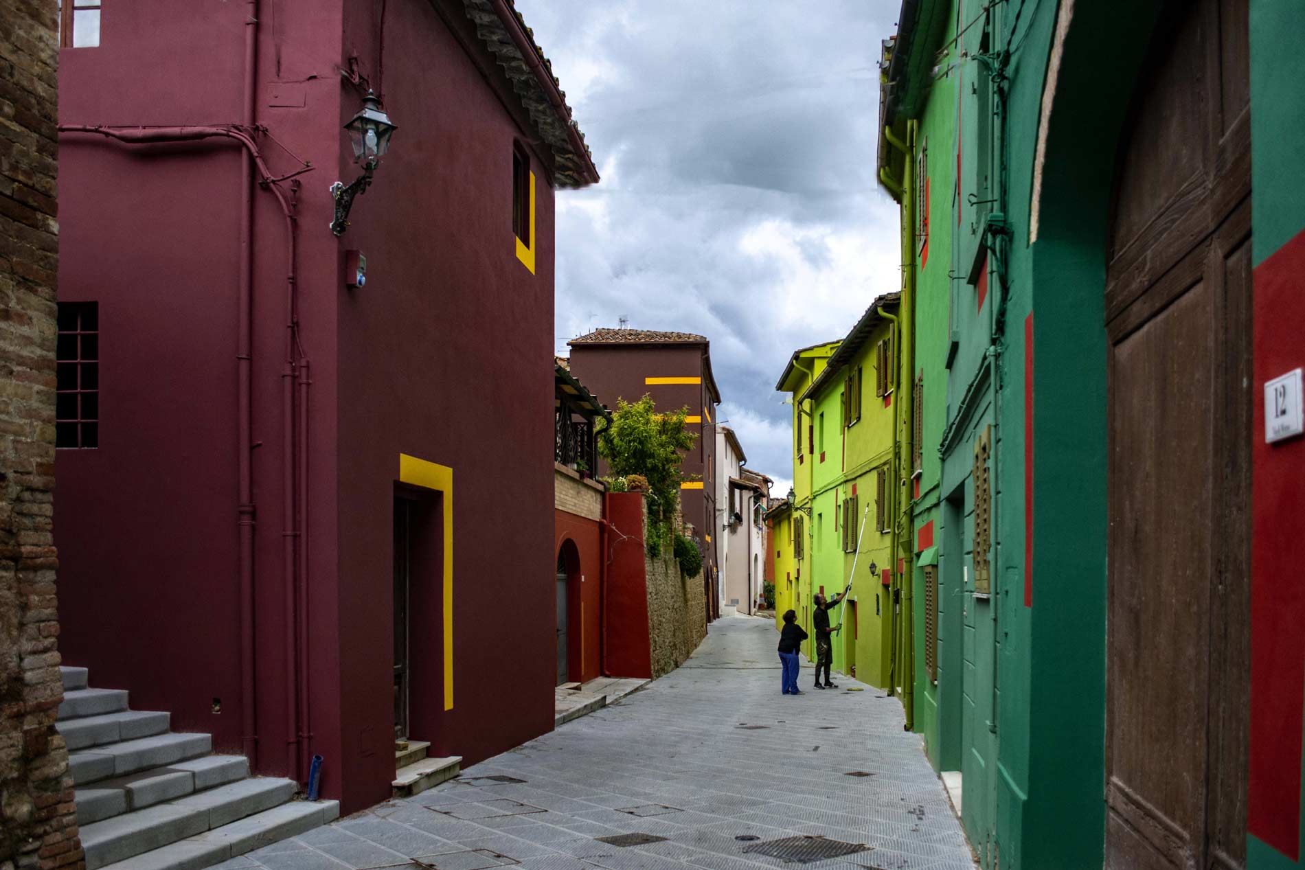 In 2018 Ghizzano is the small Italian Capital of Contemporary Art: the amazing David Tremlet’s wall painting, the main street painted by the artist, and artworks by Alicia Kwade and Patrick Tuttofuoco, will surprise you while walking through the town. You will find also important ancient works: Tommaso Pisano’s “Annunciazione” is in the small Church of the Santissima Annunziata at the beginning of the village, two painted wooden figures of the Virgin and the Angel, masterfully illuminated to be admired.